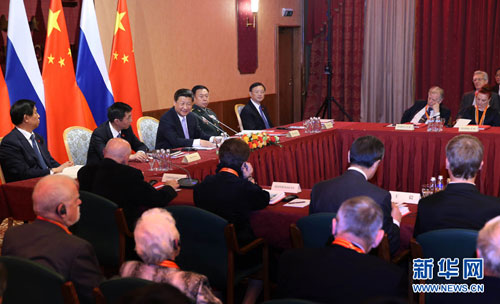 习近平指出,新中国成立之初,在中国人民最需要的时候,近3万名苏联专家先后参与援华建设,涉及工业、农业、能源、交通、教育、科技等几十个领域,同中国人民结下了深厚友谊。从1978年至今,成千上万俄罗斯专家积极参与中国改革开放和现代化建设事业。包括今天在座代表在内的俄罗斯专家们是中俄两国和平的使者,是中国人民的真诚朋友。希望我们共同传承两国人民的深厚友谊,共同开创中俄关系更加美好的明天。