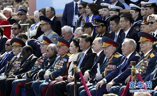 当地时间5月9日,俄罗斯举行盛大庆典,纪念卫国战争胜利70周年。国家主席习近平和来自世界约20个国家和地区及国际组织领导人出席庆典,同俄罗斯人民一道庆祝这个光辉的节日。