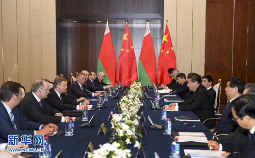 习近平指出,当前中国同白俄罗斯关系发展迅速,两国务实合作的深度和广度都得到极大拓展。昨天,我同卢卡申科总统举行了坦诚深入、富有成果的会谈,就深化中白全面战略伙伴关系达成新的重要共识,确定了下一阶段双方重点合作领域和方向。我们一致决定两国以携手共建丝绸之路经济带和世界反法西斯战争胜利70周年为契机,巩固传统友谊,加大相互政治支持,开展全方位务实合作,密切在国际和地区事务中的协调配合。希望双方落实好这些重要共识,特别是对接好双方发展战略,加快推动中白工业园等大项目合作,更好推进两国发展,造福两国人民。