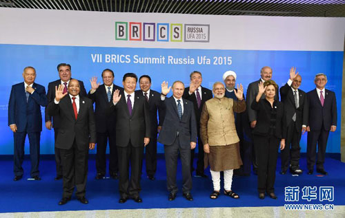 当地时间7月9日,金砖国家同欧亚经济联盟、上海合作组织成员国、观察员国及受邀国领导人对话会在俄罗斯乌法举行。国家主席习近平同俄罗斯总统普京、巴西总统罗塞芙、印度总理莫迪、南非总统祖马以及亚美尼亚总统萨尔基相、阿富汗总统加尼、白俄罗斯总统卢卡申科、伊朗总统鲁哈尼、哈萨克斯坦总统纳扎尔巴耶夫、蒙古国总统额勒贝格道尔吉、巴基斯坦总理谢里夫、塔吉克斯坦总统拉赫蒙、乌兹别克斯坦总统卡里莫夫等共同出席。