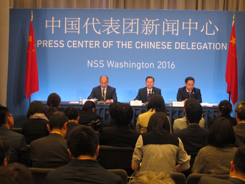 当地时间3月31日,外交部副部长郑泽光在第四届核安全峰会中国代表团新闻中心举行中外媒体吹风会,介绍中国国家主席习近平同美国总统奥巴马会晤情况。