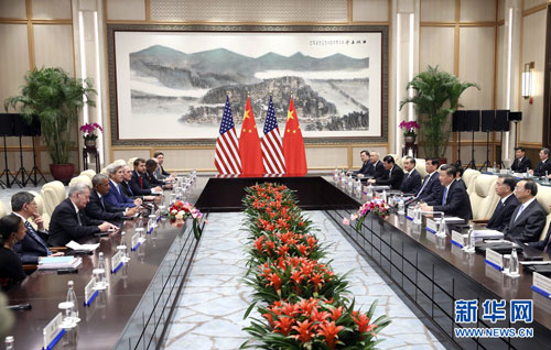 王沪宁、汪洋、栗战书、杨洁篪,美国国务卿克里、财政部长雅各布·卢、总统国家安全事务助理赖斯等参加会见。