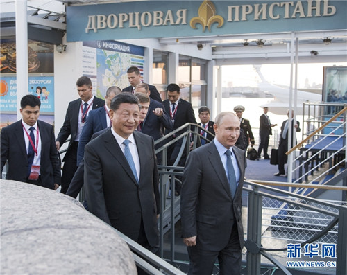 习近平和普京共同登上曾打响十月革命第一炮的阿芙乐尔号巡洋舰,听取有关历史介绍。习近平表示,阿芙乐尔号巡洋舰对中国人民而言意义非凡。当年十月革命一声炮响,给中国送来了马克思主义,为中国共产党的诞生发挥了重要作用。此后,正是在中国共产党的领导下,中国人民前赴后继,取得了中国革命和新中国建设的巨大成就。俄方完好地保留了阿芙乐尔号巡洋舰,体现着对历史的尊重。普京表示赞同,强调历史应当得到尊重。
