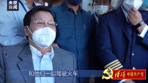 通伦:我有件印象深刻的事想讲给大家听,我去上海参加中国国际进口博览会,当时我和习近平同志以及许多领导人参观了各种展厅。在逛到高铁展厅时,我向习近平同志提了个要求,“习近平同志,我想试试开这辆火车,因为不久后老挝也会有火车了,中老铁路要来了。”他说,“请!请!”