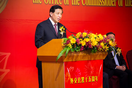 今天,我们欢聚一堂,共同庆祝外交部驻澳门特派员公署成立15周年。我谨代表外交部表示热烈的祝贺!对特区政府和特区各界一直以来对公署工作的关心与支持表示衷心的感谢!
