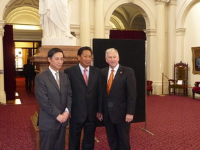在议会欢迎午宴上,代表团与8名维州议员就西藏问题、地方立法机构职能等议题进行了交流。代表团介绍了西藏历史、宗教、文化、风光、经济、社会发展成就,使议员们对西藏有了更加客观和全面的了解,对西藏产生了极大的兴趣。议员们表示将于今年10月组团访问西藏,亲自感受真实的西藏。并希望通过互访,推动地方立法机构间友好关系进一步发展。午宴前后,代表团还参观了议会上院和下院,受到两院议长及与会议员的热烈欢迎。