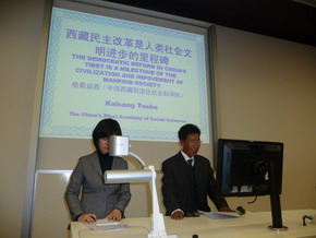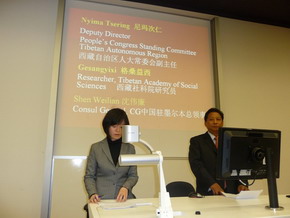 25日下午,代表团在墨尔本皇家理工学院举办报告会,当地侨、学界人士约百人出席。沈总在致欢迎辞时强调,代表团的成员均为西藏翻身农奴后代,他们是西藏民主改革50年来的参与者、见证人和受益者,他们是藏民的代表,最有资格评论西藏今昔变化。代表团两位主讲人结合自己的亲身经历,用详实的数据、生动的语言向听众们介绍了西藏民主改革50年经济社会建设取得的巨大成就。整场报告会气氛热烈。特别是提问环节,与会者踊跃提问,代表团的精彩回答赢得场上阵阵掌声。报告会结束后,听众纷纷向代表团索取西藏宣传资料,以期对西藏有更多、更全面的了解。