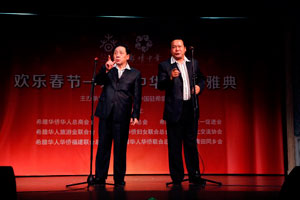 2015年2月8日,中国侨联“亲情中华”艺术团在希腊首都雅典举行新年第一场海外慰问演出。驻希腊大使邹肖力夫妇、雅典市副市长斯特拉加基女士、雅典市长代表普罗瓦塔斯以及300多位华人华侨出席。