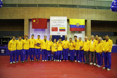 2015年5月21至22日,由中国驻哥伦比亚使馆与哥国家体育总局、国家乒乓球协会共同举办的庆祝中哥建交35周年“中哥友谊杯”乒乓球赛在哥国家集训中心隆重举行。驻哥伦比亚大使汪晓源和驻哥使馆主要外交官及哥国家体育总局局长波特罗、国家奥委会主席麦迪纳、国家乒协主席乌里韦、外交部亚大司长桑雪霏、哥中友协和各界友人等一百余人出席了22日的闭幕式。