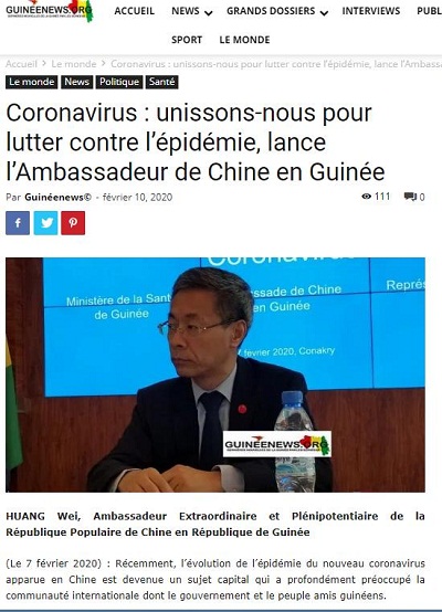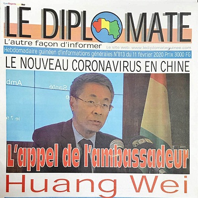 近日,驻几内亚大使黄巍在《外交官报》、新闻网等几主流媒体发表题为《团结战“疫”》的署名文章。