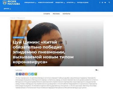 2020年2月14日,白俄罗斯国际广播电台网站、《莫吉廖夫信使报》等白主流媒体刊登驻白俄罗斯大使崔启明署名文章《中国必将战胜新冠肺炎疫情》。