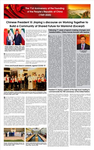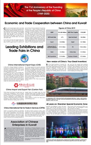 2020年10月5日,驻科威特使馆在科威特发行量最大的阿文报《消息报》和英文报《科威特时报》刊发中华人民共和国成立71周年国庆专刊。