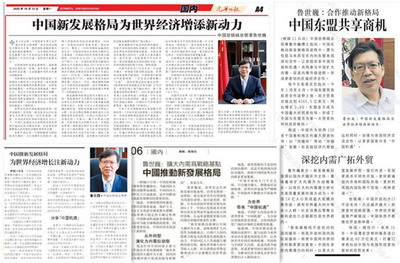 2020年10月12日,驻槟城总领事鲁世巍在马来西亚《光华日报》发表署名文章《中国新发展格局为世界经济增添新动力》,《南洋商报》《星洲日报》《东方日报》等媒体摘发了文章主要观点。