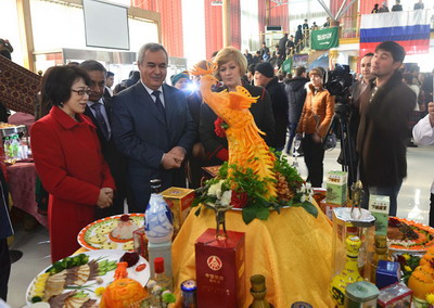 活动当日,中华美食展区人头攒动,鬼斧神工的美食雕刻、琳琅满目的小吃糕点、香气四溢的各色佳肴吸引了众多游人前来品尝,大家纷纷赞赏中华美食是一门色、香、味的综合艺术,而现场播放的《舌尖上的中国》宣传片也让食客们在满足味蕾后了解到中华饮食文化背后的人文意义。现场还展出了刺绣手包、折扇、青花瓷杯、手镯等民族工艺品,这些工艺品做工精美、古色古香,独具中华文化韵味,引得许多参观者驻足观赏并饶有兴致地询问交流。塔副外长佐希季专程到中国展区参观品尝。
