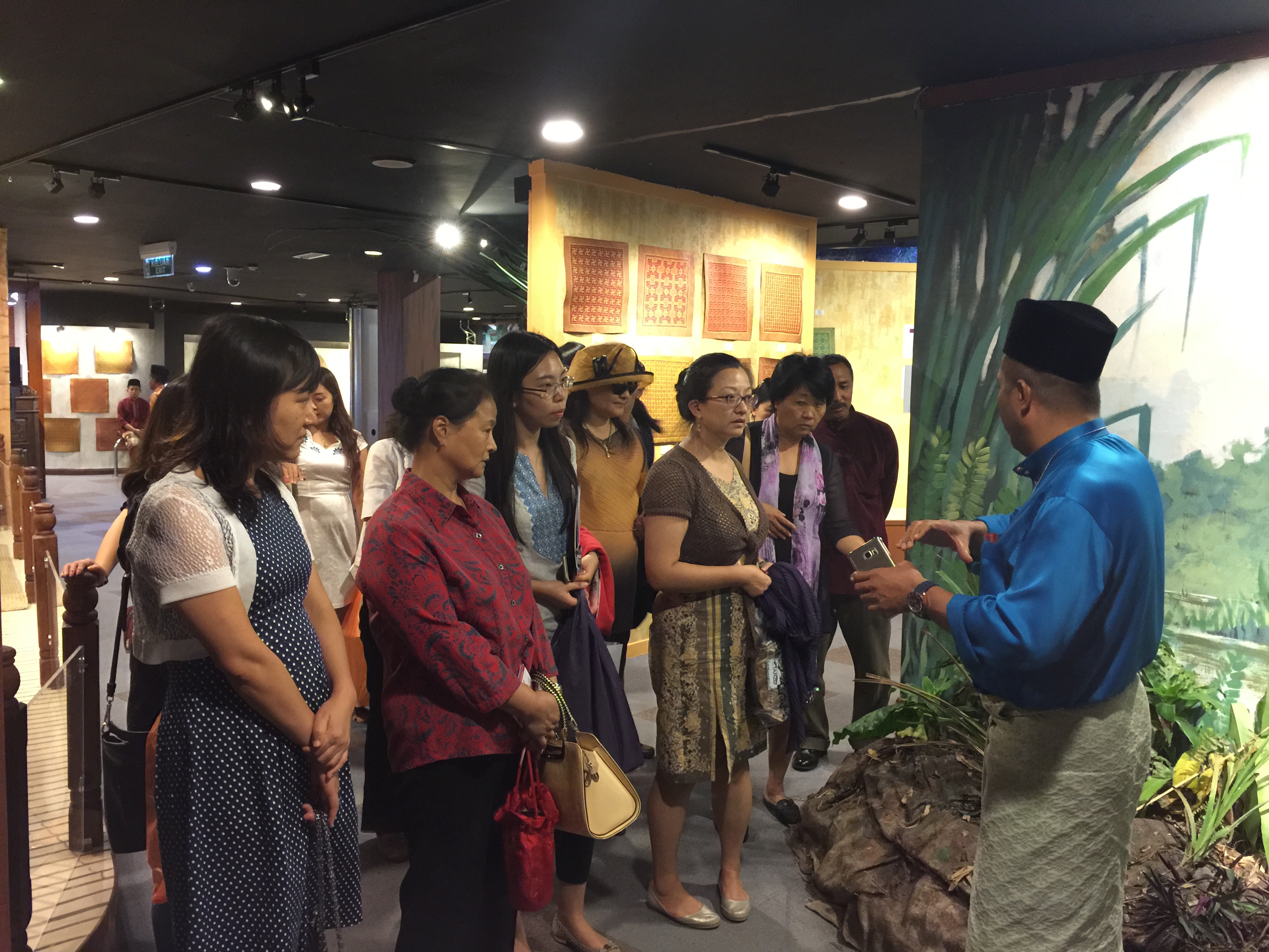 参观吉隆坡手工艺品中心时正值马手工艺发展局举办“2016国家手工艺品日”活动,中心吸引了来自全马400多家手工艺品制作商参与展销。在分别参观服装、首饰、木制品、编织物展区后,小组成员走进手工艺品中心博物馆,了解各类传统手工艺制品的历史与传承,体验手工制作技艺,增加了对马传统文化及艺术的理解。