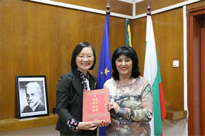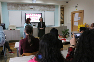 2017年10月23日,应保加利亚索非亚市138中校长玛格达兰娜・克勒斯特娃女士邀请,中国驻保大使夫人吴小莺参赞访问该校孔子课堂。