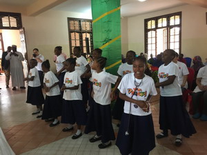 捐助活动前,孔子课堂的老师带领两位桑岛学生,表演中国传统节目太极扇,受到孩子们的热情欢呼。福利院的孩子们身穿整齐的制服,载歌载舞,为在场的来宾献上生动的歌曲表演。孩子们用稚嫩的歌声唱出了他们对未来的憧憬,表达了他们想要当医生、老师、农民,为桑岛发展贡献力量的美好心愿。
