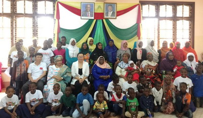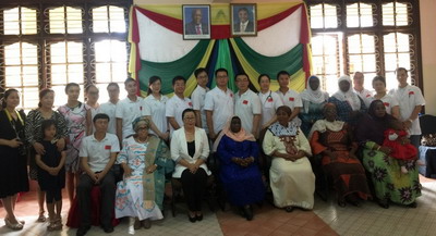 桑总统夫人等嘉宾与总领馆妇女小组、中国援桑医疗队合影留念