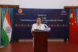 妇女分会主席塔尔瓦女士发表了热情讲话,她感谢江博士和中国使馆主办这一重要活动,表示印中两国交往可追溯至2000年前,古丝绸之路成 为两国主要贸易通道。时至今日,两国作为新兴经济体贸易关系日益紧密。中国有约四分之一的企业家为女性,55%的新型电商平台由女性创办。印女性企业家作用越来越重要。希印中两国女企业家携手发掘合作潜力、促进双边交往。