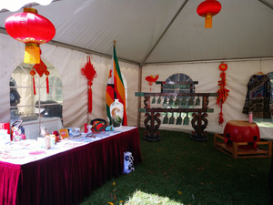 2019年5月24日,津巴布韦第一夫人奥克西莉娅倡办的首届文化美食节活动在美丽的哈拉雷花园隆重举行。数十家津政府机构、当地企业、中小学校和驻津巴布韦使馆积极参与,展示各自精美文化和美食,并上演精彩文艺演出。驻津使馆积极响应,驻津巴布韦大使夫人王薇参赞携使馆工作人员与当地中餐厅共同作出精心准备,在中国展台向各方来宾展示了中华美食和特色鲜明、风格独特的中华艺术品,受到当地民众欢迎和喜爱。