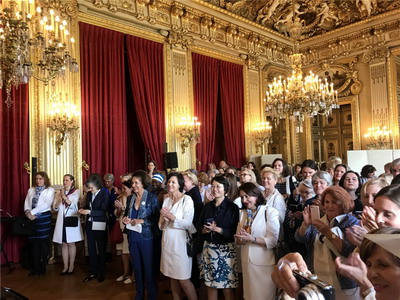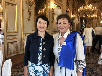 2019年6月6日,驻法国大使夫人王新霞参赞应“来法协会”名誉主席、法国外长夫人勒德里昂女士邀请,出席年度国际午餐会。协会主席、外交部秘书长夫人顾山女士以及200多位驻法使节夫人和女外交官出席。