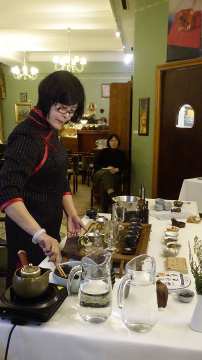 茶会期间,组织者卡瑞女士、奥雅斯特女士还邀请大家品尝了英国红茶、中国藏茶、俄罗斯草药茶,分享了中国之行见闻及画作灵感来源。
