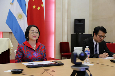2020年6月23日,在中国传统节日端午节前夕,驻阿根廷大使夫人宁懿参赞同阿根廷银玫瑰赛艇协会、阿根廷华侨华人妇女联合总会及阿根廷龙舟协会负责人举行视频交流会。