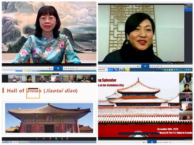 2020年12月16日,驻加拿大使馆以“紫禁城600年”为主题,举办在线文化沙龙,加政府部门、国家艺术基金会、国际古迹遗址理事会代表、社会各界人士,驻加外交官和使节夫人等近50人出席。