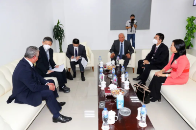 2022年12月15日,驻埃及大使廖力强赴苏伊士省泰达经贸合作区出席巨石埃及公司年产12万吨玻璃纤维新生产线点火仪式,并实地调研公司生产经营情况。苏伊士运河经济区总局主席瓦利德·贾马勒丁、副主席穆罕默德·沙班以及中国巨石海外生产总监张文超等出席活动。