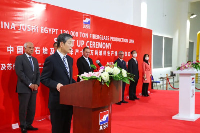 廖力强大使祝贺巨石埃及公司新生产线投产,感谢苏伊士运河经济区总局等部门对园区内中国企业的长期支持,表示巨石埃及公司玻璃纤维生产项目是中国迄今为止在埃及制造业领域投资金额最大的项目,填补了非洲和埃及玻纤行业技术空白,新生产线的建成将使总产能达到32万吨,使埃及成为世界第四大玻纤生产国。
