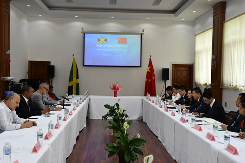 2024年5月28日,驻牙买加使馆举办中国—牙买加工商界对话会。驻牙买加大使陈道江出席会议并讲话,牙制造商和出口商协会主席斯维茨及中牙企业家代表近三十人参加交流。