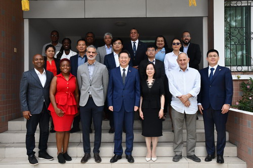 陈大使宣介了中国经济发展和扩大高水平对外开放举措,表示中国经济具有强大韧性,长期向好的基本面没有改变,中国坚定不移推进高水平对外开放,愿同包括牙买加在内的世界各国分享中国发展机遇,共创美好未来。陈大使还就中牙经贸合作机遇和挑战回答了提问并同与会者进行深入交流。