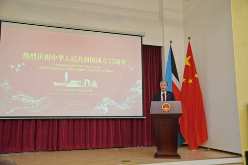 蒙代代表南总统基尔祝贺新中国成立75周年,盛赞中国发展成就和中非合作、南中关系发展成果,重申南恪守一个中国政策、坚定支持三大全球倡议和共建人类命运共同体理念。招待会气氛热烈友好。