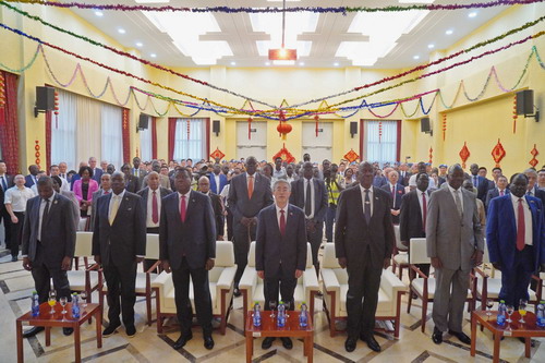 2024年9月25日,驻南苏丹使馆举办庆祝中华人民共和国成立75周年招待会,驻南苏丹大使马强和南代理外长蒙代出席并致辞。南总统高级顾问曼扬、路桥部长米约克、央行行长阿利克等政府、政党及各界代表,中国援南医疗队、维和部队和中资企业、侨胞代表等200余人欢聚一堂。