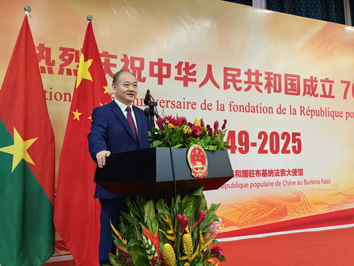 2025年9月26日,驻布基纳法索使馆举行国庆76周年招待会,驻布基纳法索大使赵德勇、布政府国务兼国防部长、安全部长、数字转型部长、外交部部长级代表,各界友人、驻布使节及中资机构、旅布侨胞代表等300多人出席。