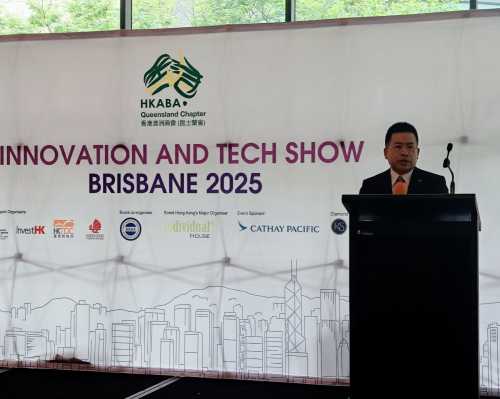 2025年10月13日,驻布里斯班总领事阮宗泽应邀出席香港澳洲商会昆士兰分会主办的2025布里斯班创新与技术展开幕式并致辞。联邦议员坎贝尔、香港特区政府驻悉尼经济贸易办事处处长庄国民等出席。本次活动展示了自动化、环境科技、建筑材料等技术的新进展。
