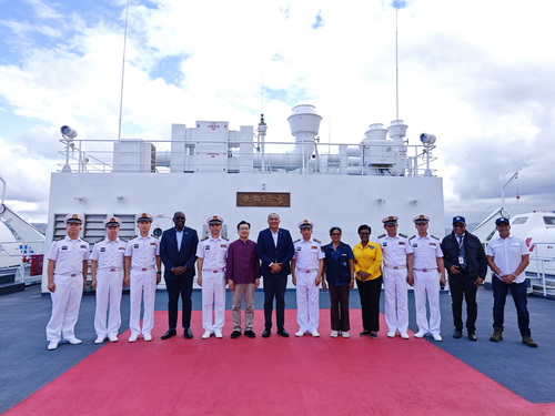 2025年12月4日,中国海军“丝路方舟”号医院船抵达牙买加蒙特哥贝,驻牙买加大使王锦峰和当地民众、华侨华人代表等在码头迎接。牙卫生和健康部长塔夫顿、首席医疗官麦肯齐,蒙特哥贝市长弗农等专程登船参观交流。