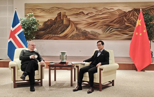 2025年1月7日,驻冰岛大使何儒龙会见冰岛生物科技公司健尼斯创始人兼董事会主席罗伯特·古德芬松,就加强生物医疗合作事宜深入交流。