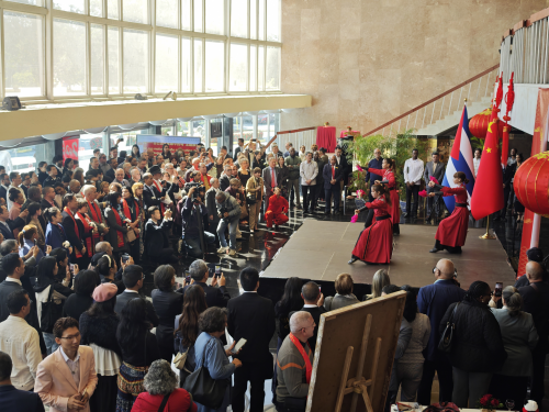2026年2月4日,驻古巴使馆在古巴国家剧院大厅举行2026年春节招待会暨“奔腾之风——古巴艺术家眼中的马”主题展览开幕式。驻古巴大使华昕,古巴国家主席迪亚斯-卡内尔夫人奎斯塔,文化部长阿隆索,代外长培尼亚韦尔,哈瓦那省省长埃尔南德斯及古共中央、外交部、革武部等各界友好人士和侨胞代表出席。