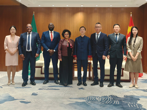 2026年2月5日,驻非盟使团团长蒋烽大使会见非盟发展署首席执行官娜多斯。