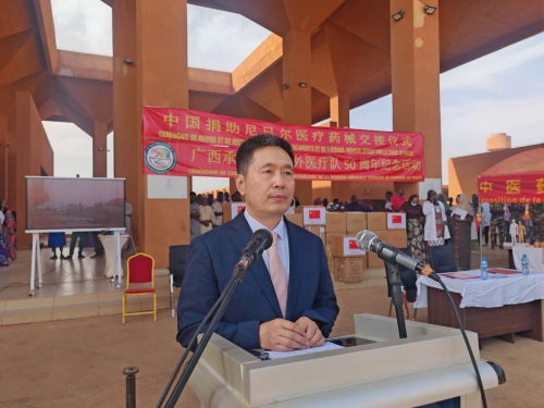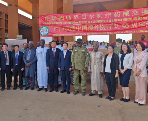 2026年3月25日,驻尼日尔大使律桂军出席尼日尔卫生部和尼亚美综合医院举办的广西承派中国援尼医疗队50周年庆祝活动并致辞。尼日尔卫生部长哈基米、广西卫健委主任杜振宗出席仪式。