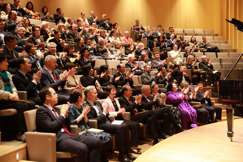 邓励大使致辞表示,30年前,中俄在平等、尊重、互利基础上,建立战略协作伙伴关系。30年来,中俄关系“风雨不动安如山”,双方在坚持独立自主的同时高度互信、密切协作,树立起大国相交、邻国相处的典范。在习近平主席和普京总统战略引领下,中俄关系不断提质升级,为动荡变革世界持续注入宝贵稳定性与确定性。两国人文交流不断深化,友好情谊愈发牢固,如钢琴的和声绵长动人。今晚的钢琴音乐会就是中俄人文交流、民心相通的缩影。