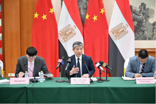 2026年4月22日,驻埃及使馆举办专题座谈会,宣介习近平主席就维护和促进中东和平稳定提出的4点主张,驻埃及大使廖力强发表讲话。埃及外交事务委员会执行主任伊扎特大使、奥马尔大使,埃中友协副主席希夫尼大使,金字塔政治与战略研究中心国际部主任甘迪勒,阿盟以色列事务司长吉汉及中埃媒体代表等参会。