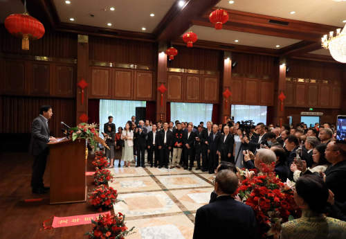 2024年1月18日,驻泰国大使韩志强及夫人王欢在使馆举办2024年“温暖迎春 共庆中国年”活动,在泰华侨华人、中资机构人员、留学生、孔院教师、驻泰媒体代表等300余人出席。