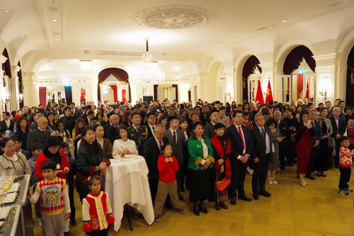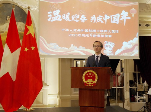 2025年2月11日,驻瑞士使馆在伯尔尼举办“温暖迎春·共庆中国年”新春招待会,驻瑞士使馆临时代办茅俊出席并致辞,旅瑞华侨华人、中资机构、留学生代表共约400人参加。