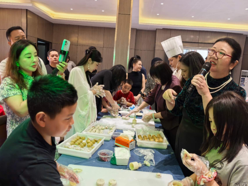 活动现场,清雅的中国茶艺与悠扬的古筝演奏交织出和美的东方画卷,来宾们亲手制作精美月饼、深情齐唱祖国颂歌。