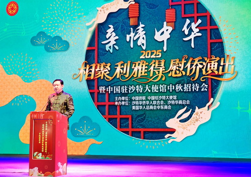 2025年10月3日,驻沙特使馆举行中秋招待会,中国侨联献上“亲情中华—相聚利雅得”慰侨演出,驻沙特大使常华出席。中国侨联代表团,以及在沙华侨华人、教师留学生、中资机构员工代表等600余人欢聚一堂,共庆佳节、共话团圆。