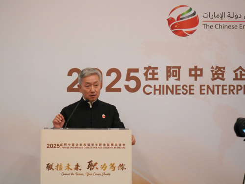 2025年10月9日,由驻阿联酋使馆主办的首届在阿中资企业和留学生职业发展交流会在哈利法大学举办。驻阿联酋大使张益明、哈利法大学校长易卜拉欣,以及近20家在阿中资企业和中外学生代表约300人参加。
