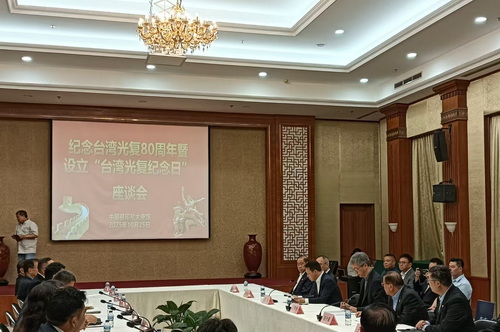 与会人员纷纷表示,坚决拥护设立“台湾光复纪念日”,台湾属于中国不容否认,祖(籍)国必将实现完全统一。