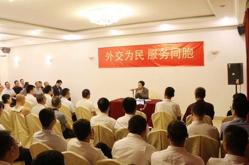 2025年10月11日,驻尼日尔大使律桂军出席使馆在尼华人华侨联合总会举办的“领事保护进社区”活动并致辞。尼华侨华人、中资机构代表、中国医疗队队员等100余人参加。